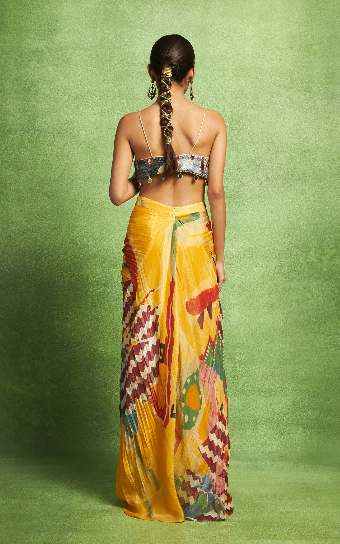 Abstract Print Hand Pleated Skirt Set