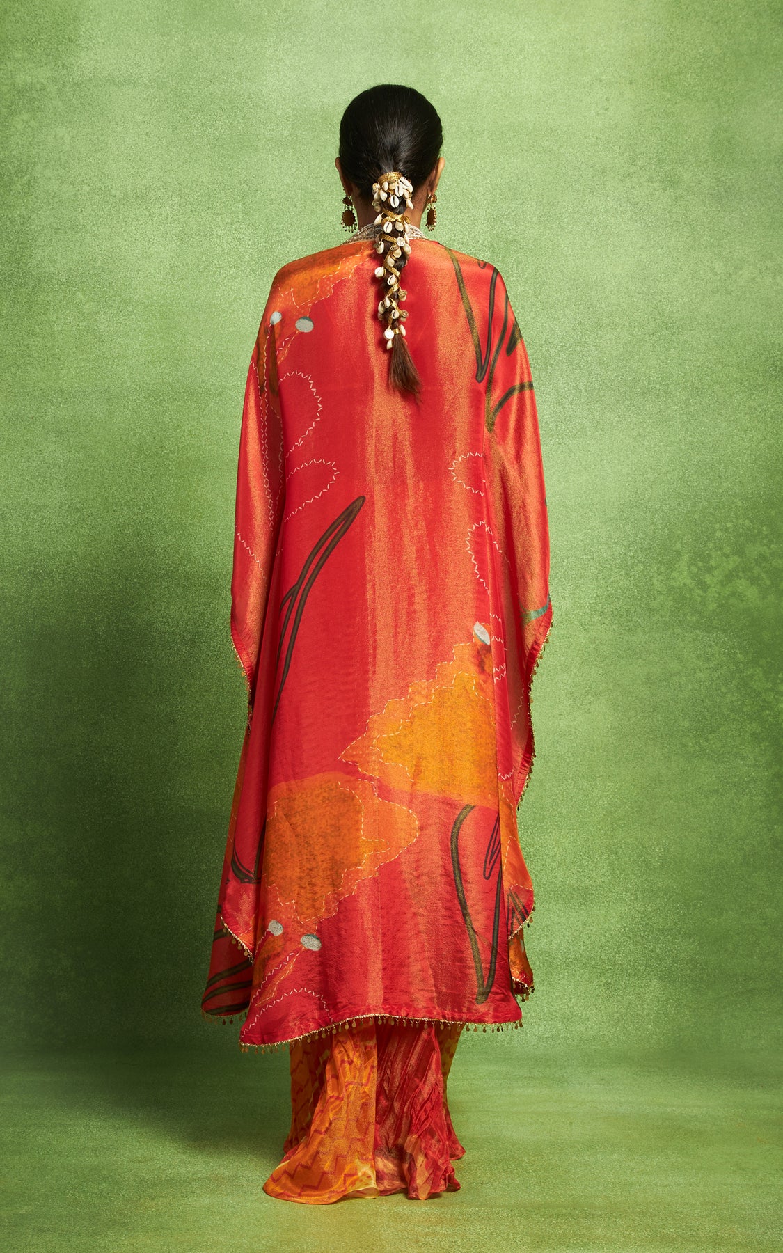 Abstract floral printed jacket with hand embroidery details.