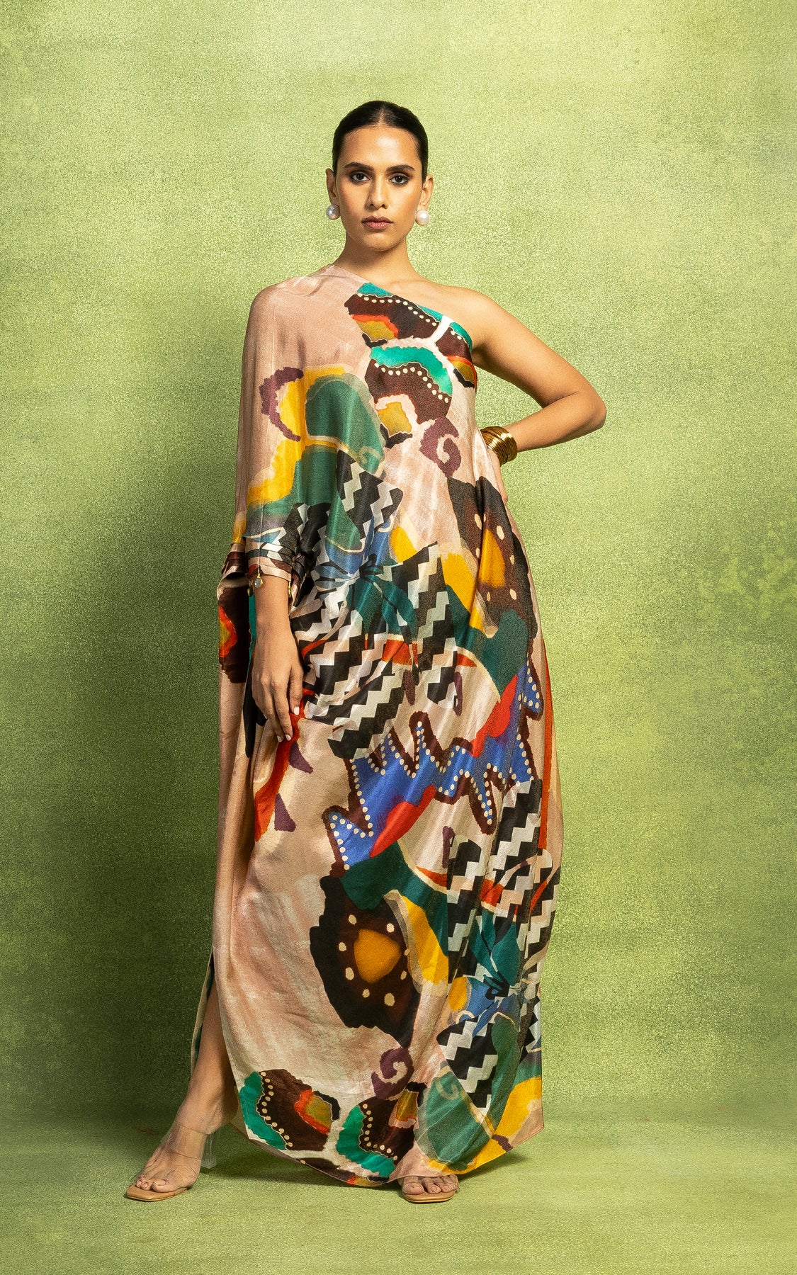 It has pleating detailing on the sleeve side and is adorned with mirror tassels & comes with a drawstring detail feature on the other side.