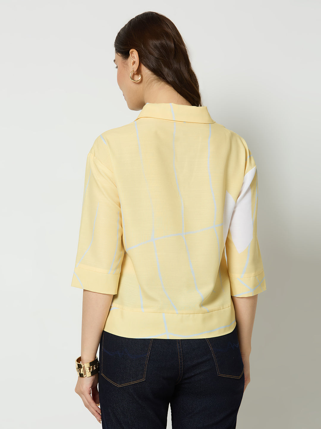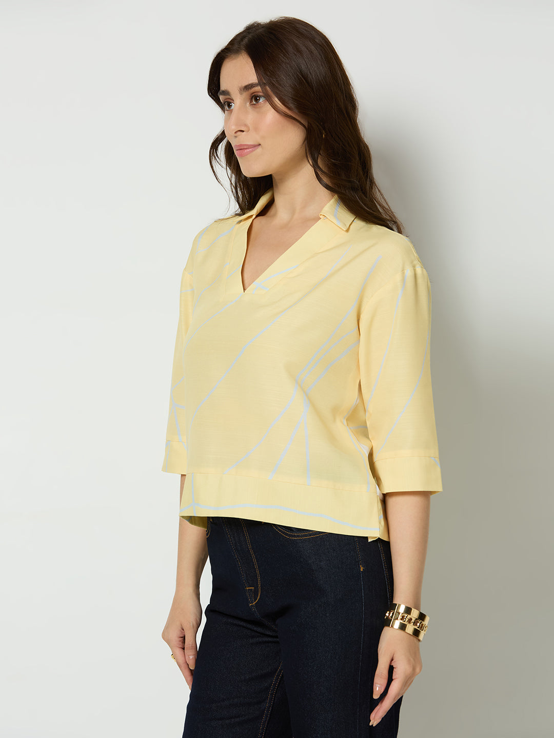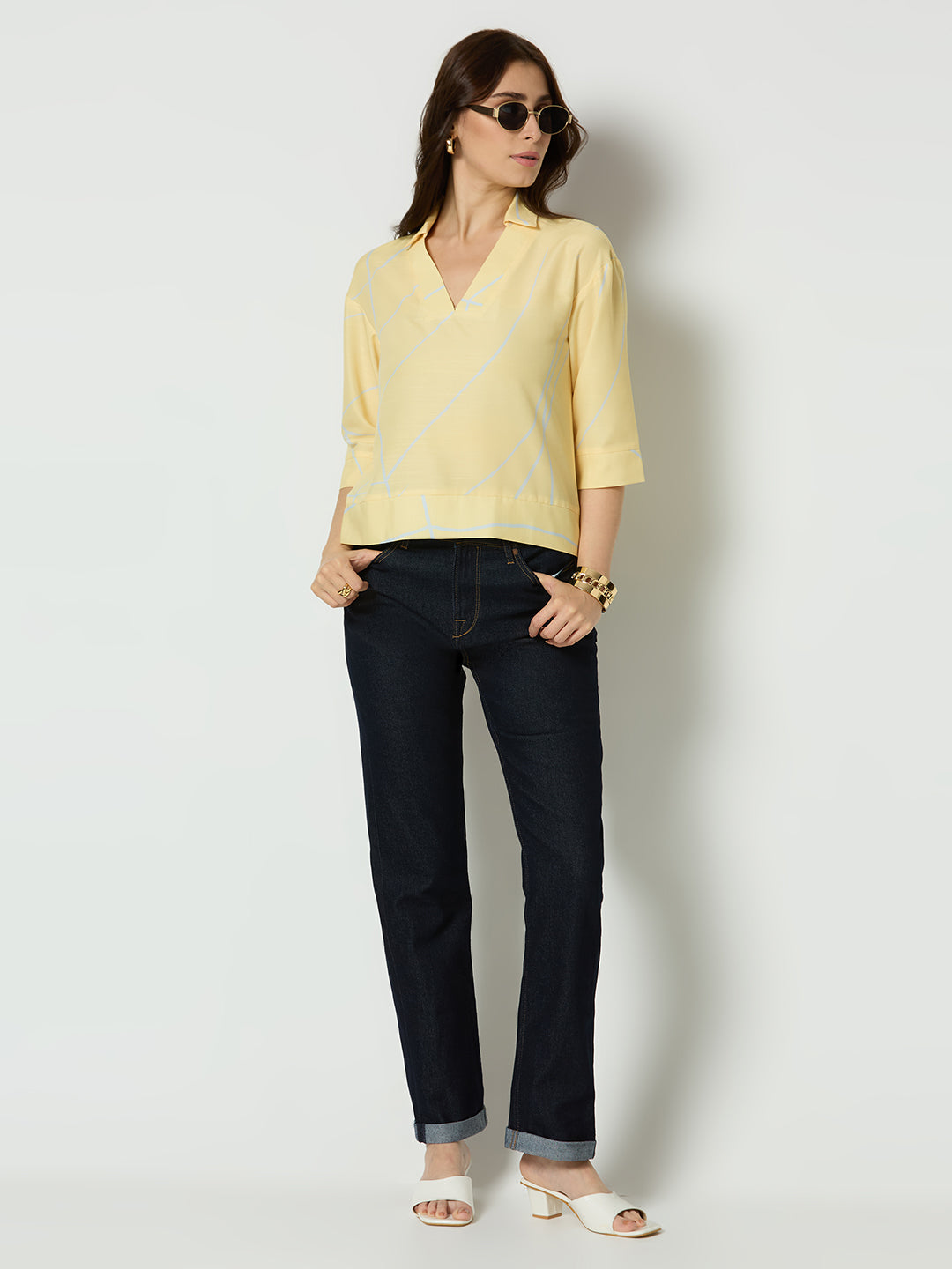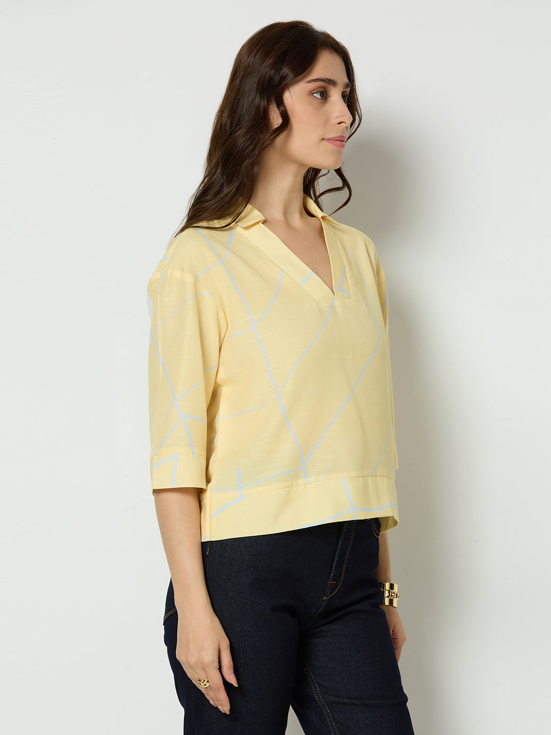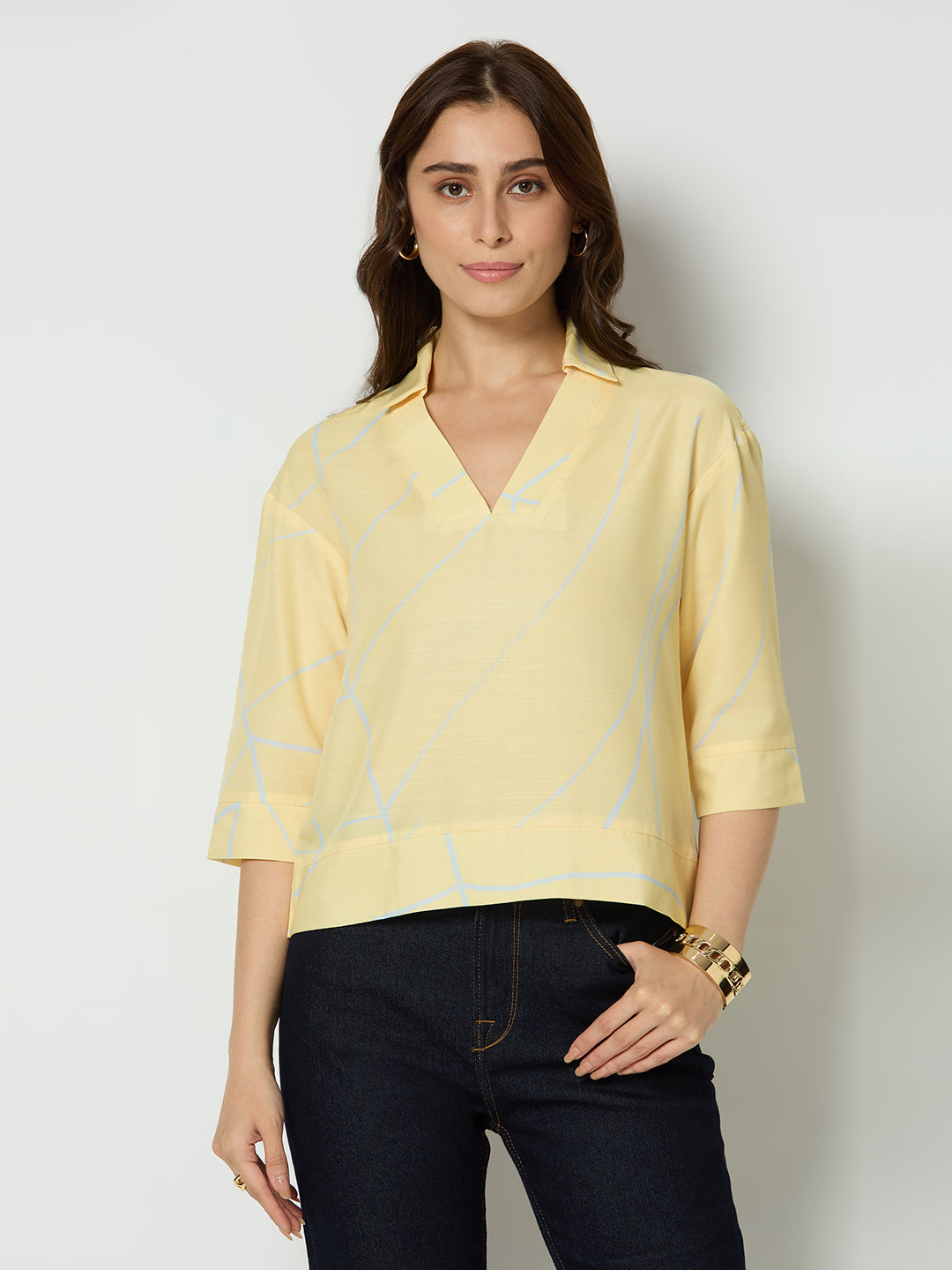 ABSTRACT YELLOW PRINT STRAIGHT FIT V-NECK TOP
