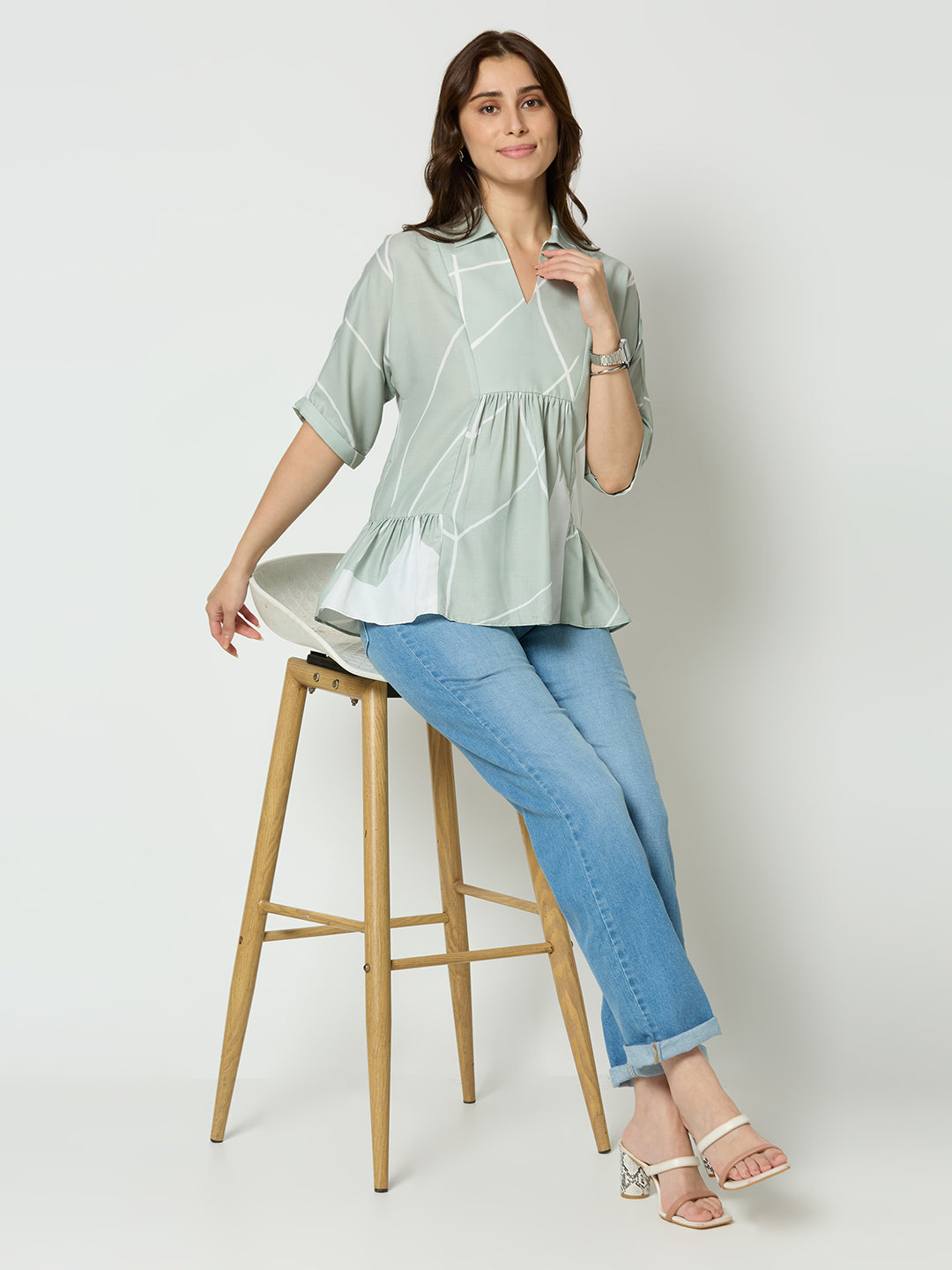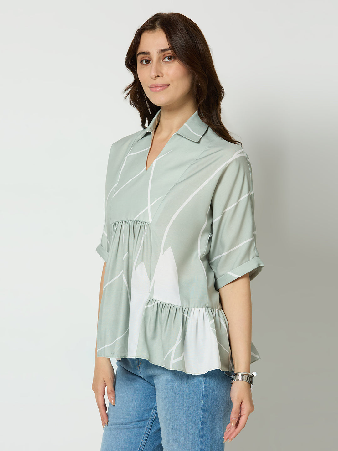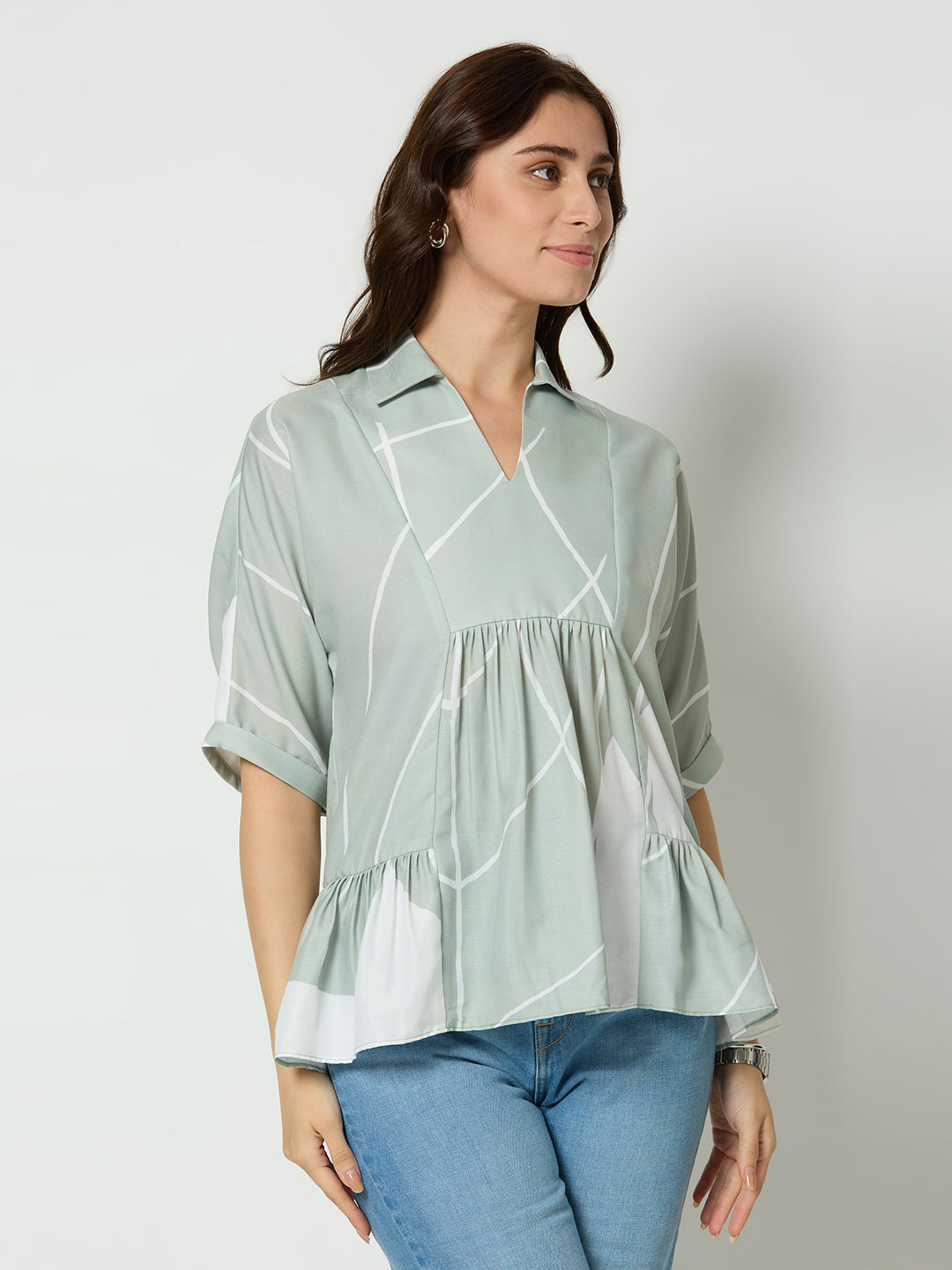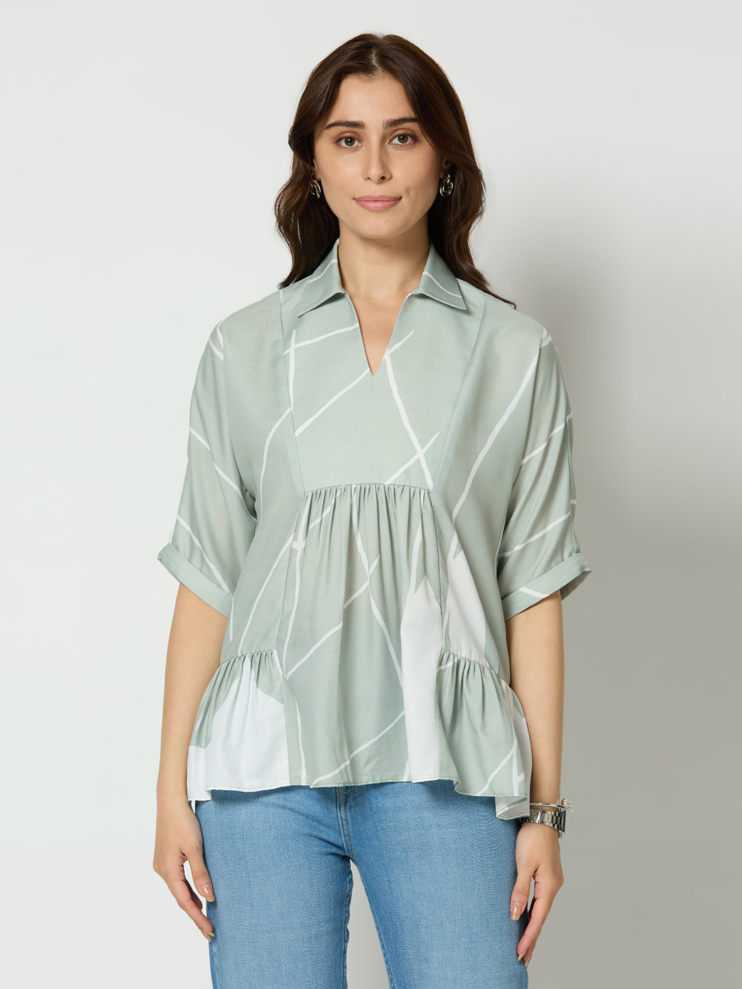 Regular fit abstract printed v-neck top