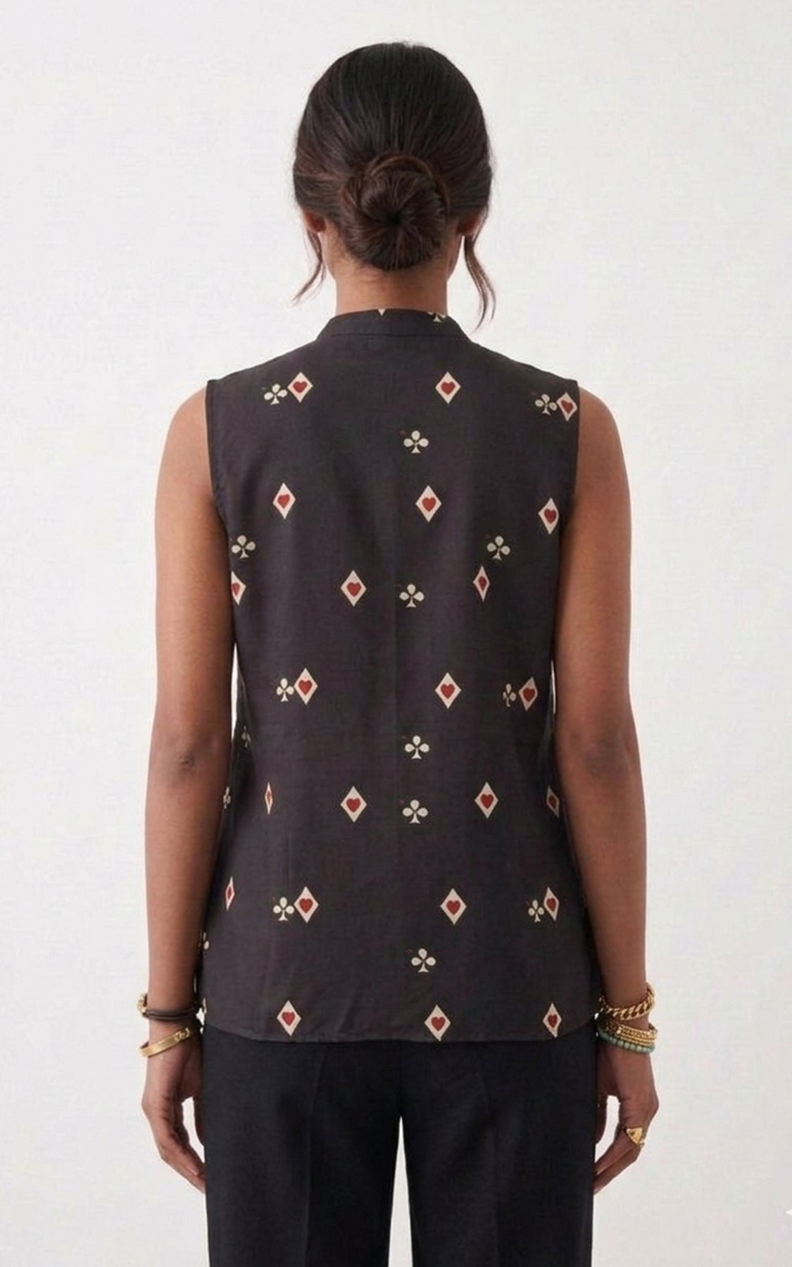 BLACK PRINTED SLEEVELESS SHIRT